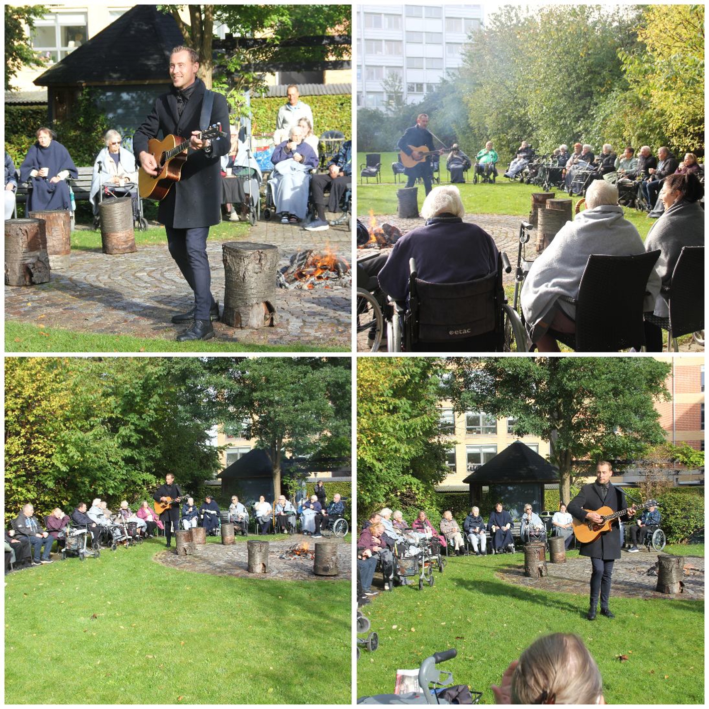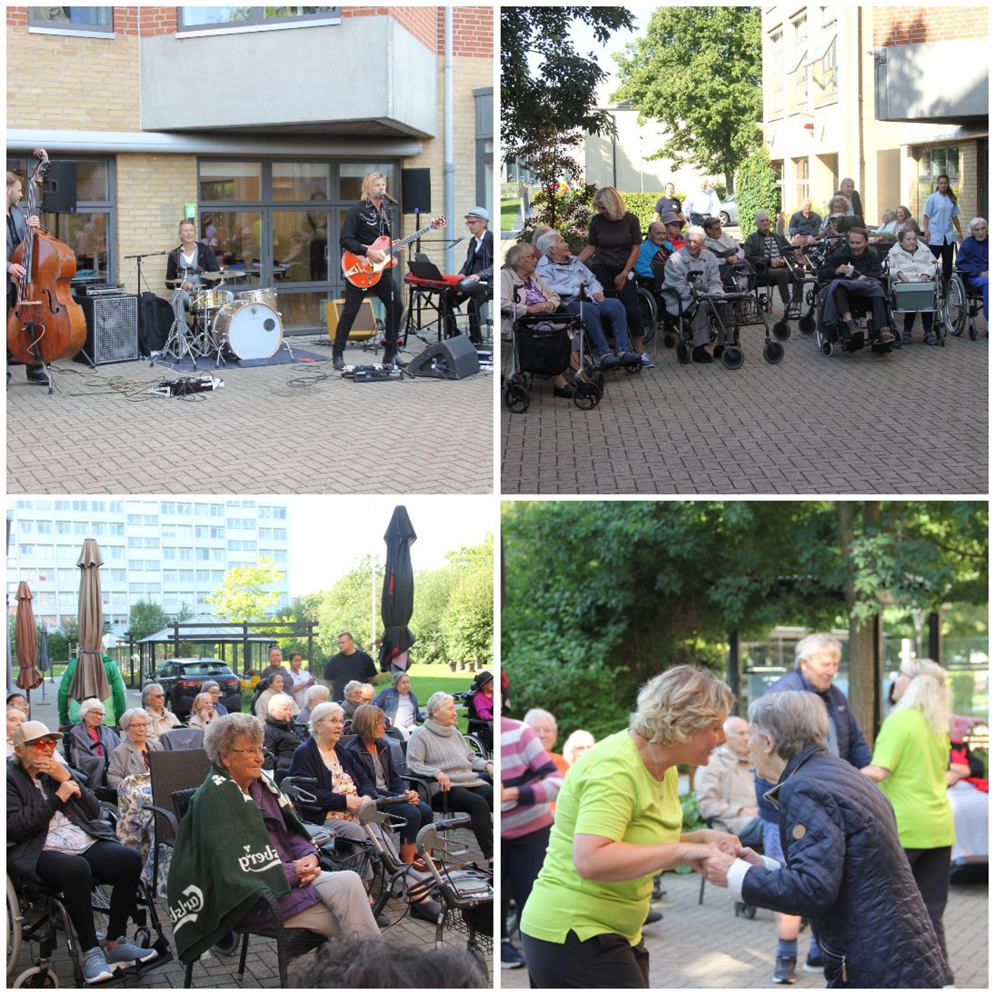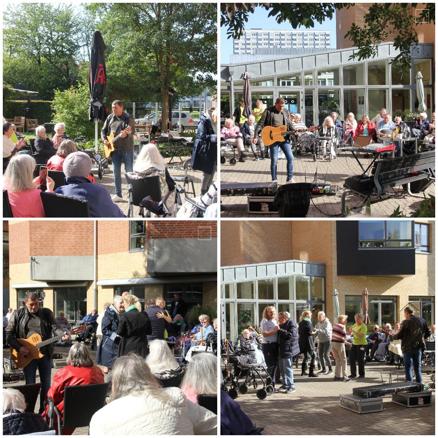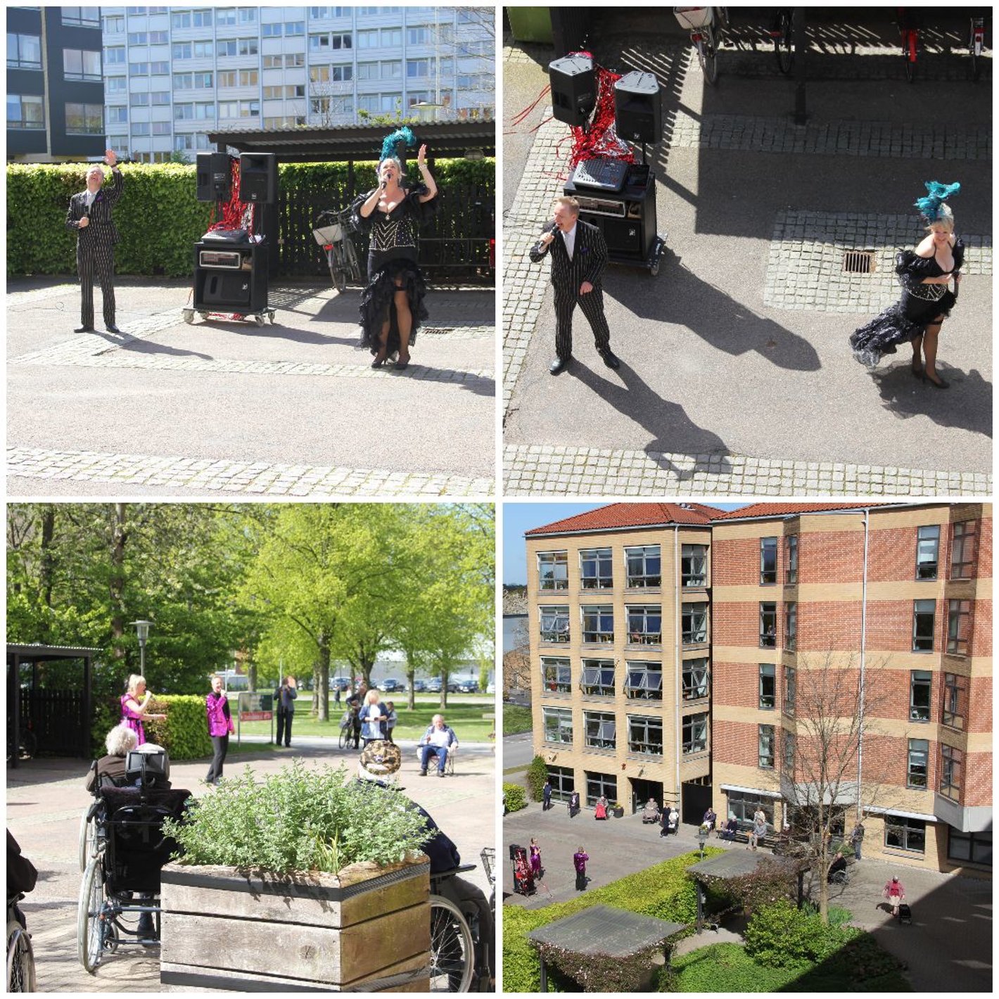 I Coronatiden har mange af vores arrangementer været udendørs, efter alle kunstens regler. Det har været hyggeligt, trods både kulde og varme. Alle har synes det var rart med lidt frisk luft - eller lytte med fra deres lejligheder.